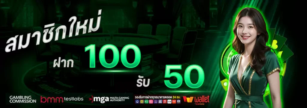สมาชิกใหม่สมัคร ฝาก 100 รับ 50 = 150